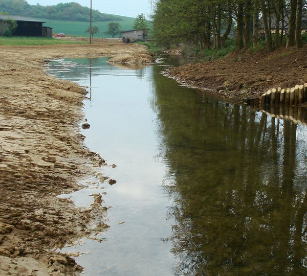 Im Zusammenhang mit der Hochwasserschutzmaßnahme in Götzingen wurden der begradigte Rinschbach aufgeweitet, Ufer- und Sohlstrukturen geschaffen, sowie die Ufer abgeflacht. Mit dem Erwerb eines Gewässerrandstreifen können Stoffeinträgen aus den Landwirtschaftsflächen künftig vermieden werden.